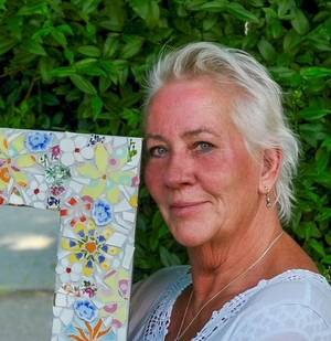 Creatief bezig zijn is een passie sinds m’n vroege jeugd. Het is m’n beroep geworden, wat een geluk. Ik geef nu meer dan 25 jaar lessen beeldende vorming in het voortgezet onderwijs. Ik vind het heerlijk om met pubers te werken. Een jaar of 8 geleden kwam ik in aanraking met het mozaïeken en dit werd een NOG grotere passie, die ik erg graag met anderen wil delen. Je ontwerpt, knipt, plakt, puzzelt tot er een kunstwerk ontstaat. Therapeutisch, want je denkt nergens anders aan. Welkom dus aan m’n picknick tafel waar de doorlopende workshop plaatsvindt.